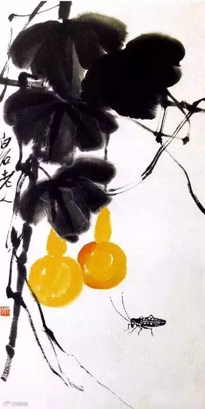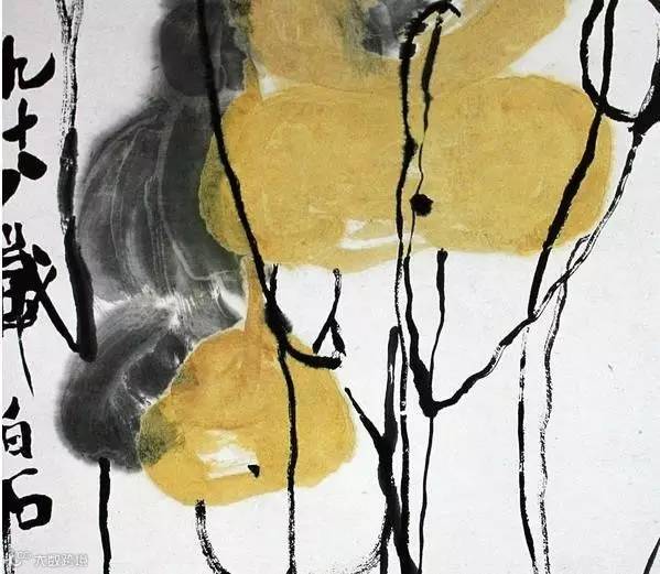 这幅画最绝的是藤蔓,用笔用墨已经是天籁,是神在走,而不是手在走,笔墨中包孕的精气神完全超越了白石老人的身体健康的状态,是修养在完全自由自然自在自为的状态下的释放,一个中国画家只有到了这个境界才谈得上是“天爵”。与此相比,包括白石老人以前的作品,所有人的画都只能算是“人爵”。