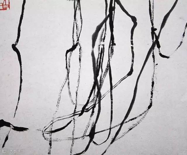 等到用浓墨画藤时,又恍惚了,画着画着就勾成葫芦的样子了。但这都不要紧,老人完全是在“糊涂”状态下用本能在作画。