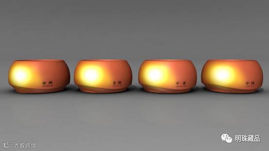 四个紫砂杯,代表“一带一路”的主要地区,中国,中亚,欧洲,非洲。