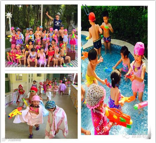 2015年7月初,深圳又一次迎来了小高温,孩子们期待已久的小泳池也随之开放。前期的消毒和卫生工作结束后,老师们很快制定出泳池的使用时间和排班顺序。