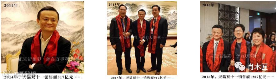 马云更是从2014年双十一晚会必戴“祈福彩”