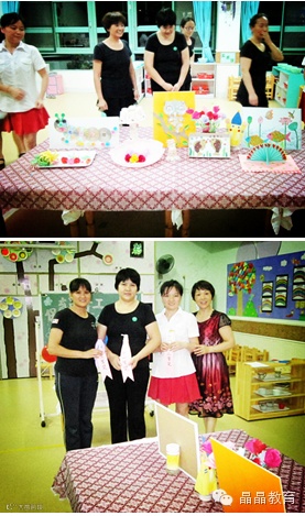 晶晶九州幼儿园为了挖掘保育老师的潜质,提高保育老师的动手动脑技能,给保育老师提供一个自我展示的舞台,于6月30日上午在小三班课室里全体保育老师参加了手工制作比赛。