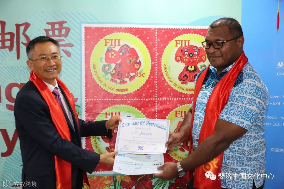 斐济中国文化中心分别于2016年和2017年与斐济邮政有限公司合作,发行了猴年和鸡年生肖邮票。2018年双方再次合作,成功发行狗年邮票。这是中国和斐济文化交流和合作的丰硕成果,标志着中斐人民之间的友谊日益加深,同时也反映了两年以来中斐两国之间的文化交流取得长足进展。