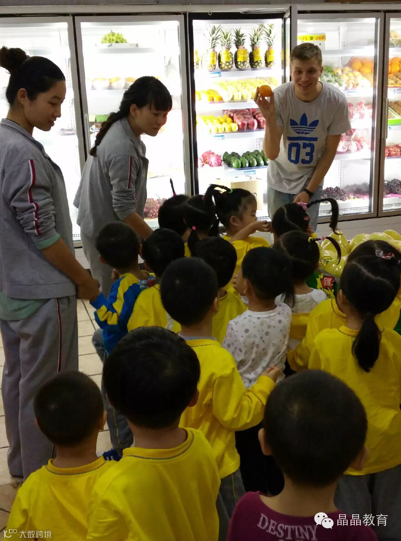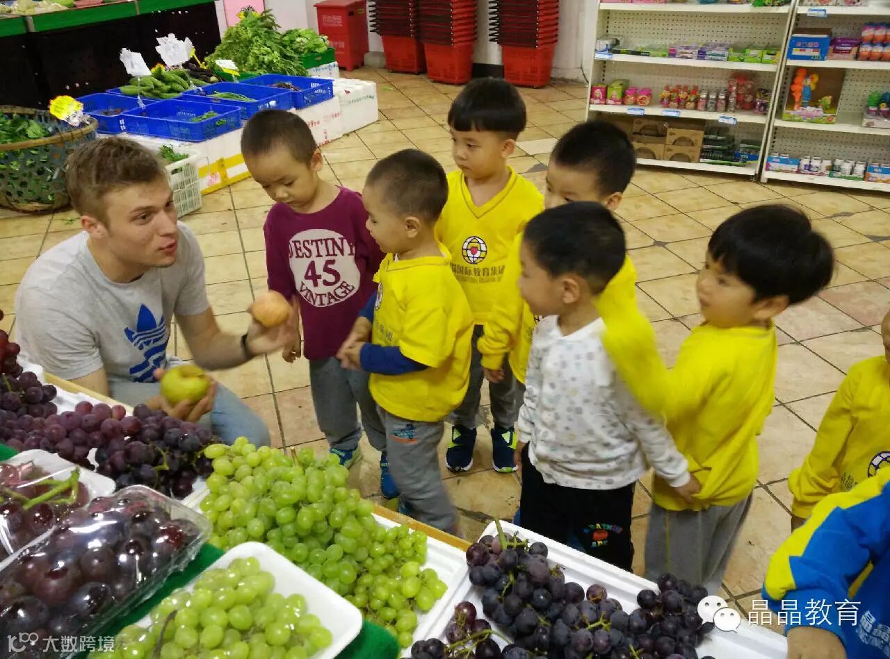 在引导小朋友观看水果的颜色、形状的同时,重点介绍了一些秋季成熟的水果,此时,热情洋溢的外教老师Otto也耐心的给小朋友们用英语介绍各种水果的英文名。