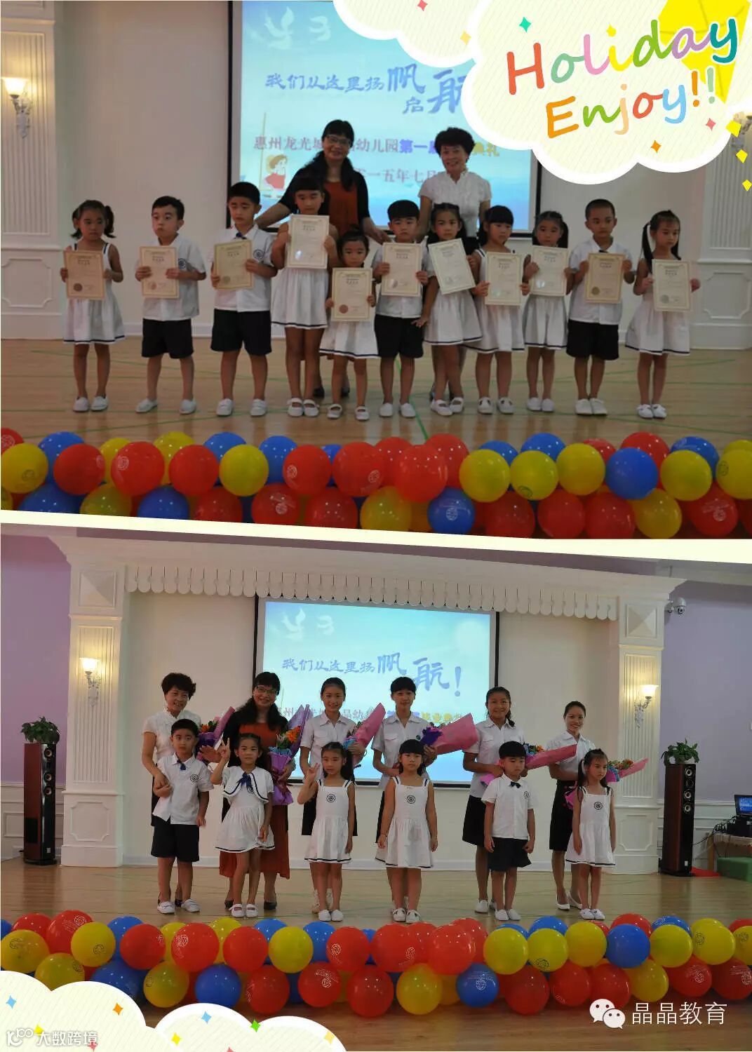 近日,惠州龙光城晶晶国际幼儿园在幼儿园音乐活动室隆重举行了“我们从这里杨帆起航第一届毕业典礼”活动。