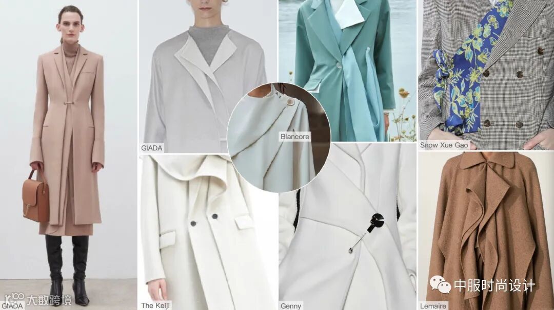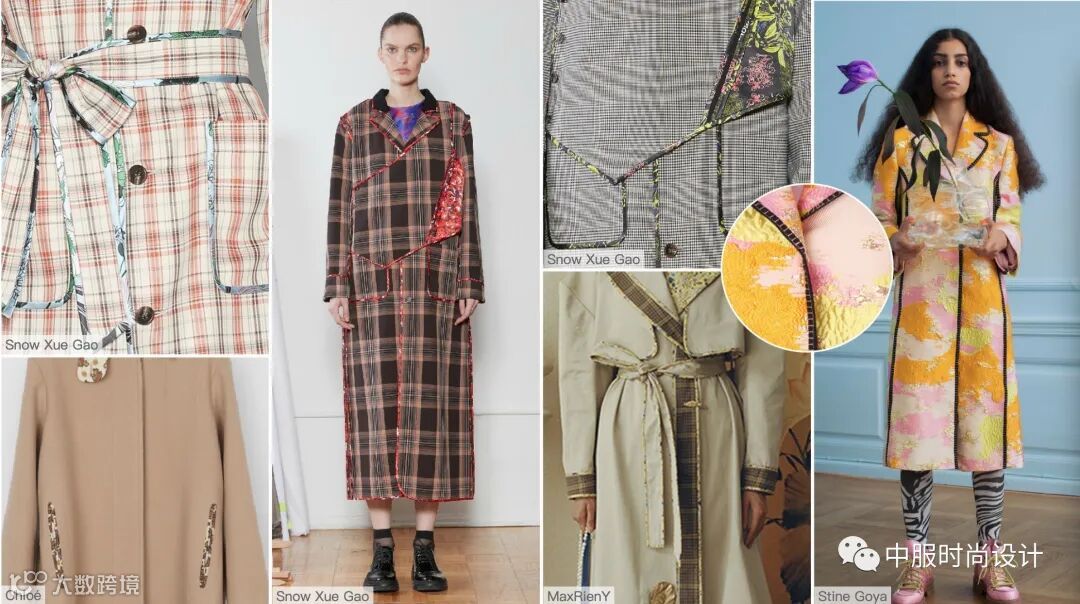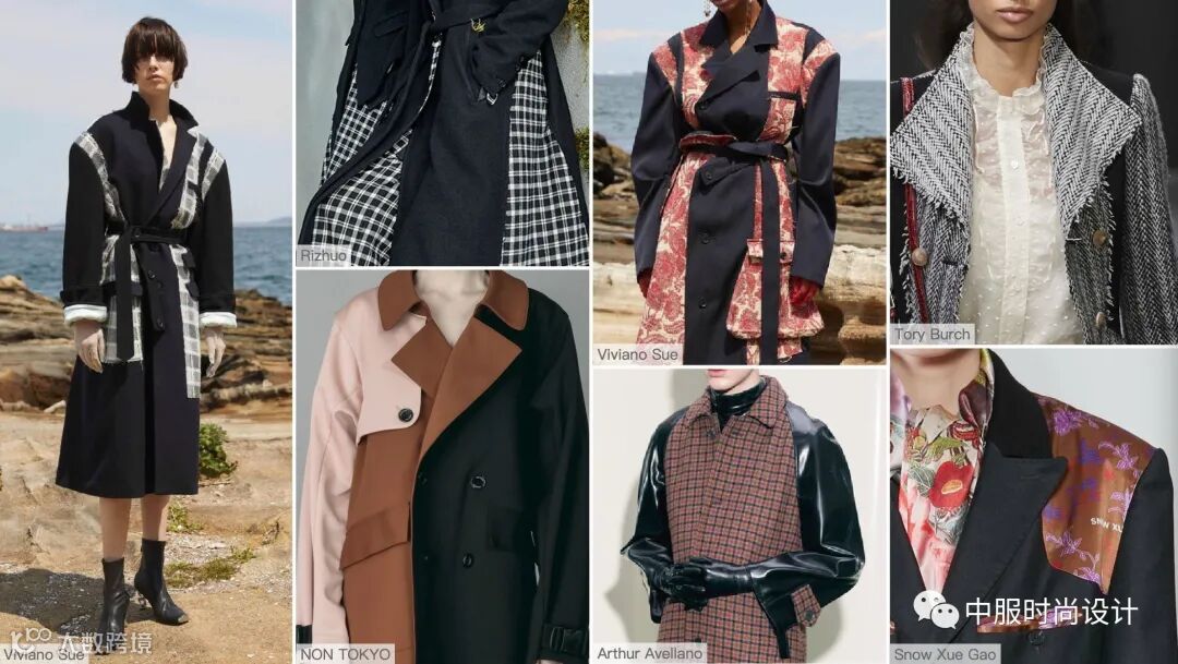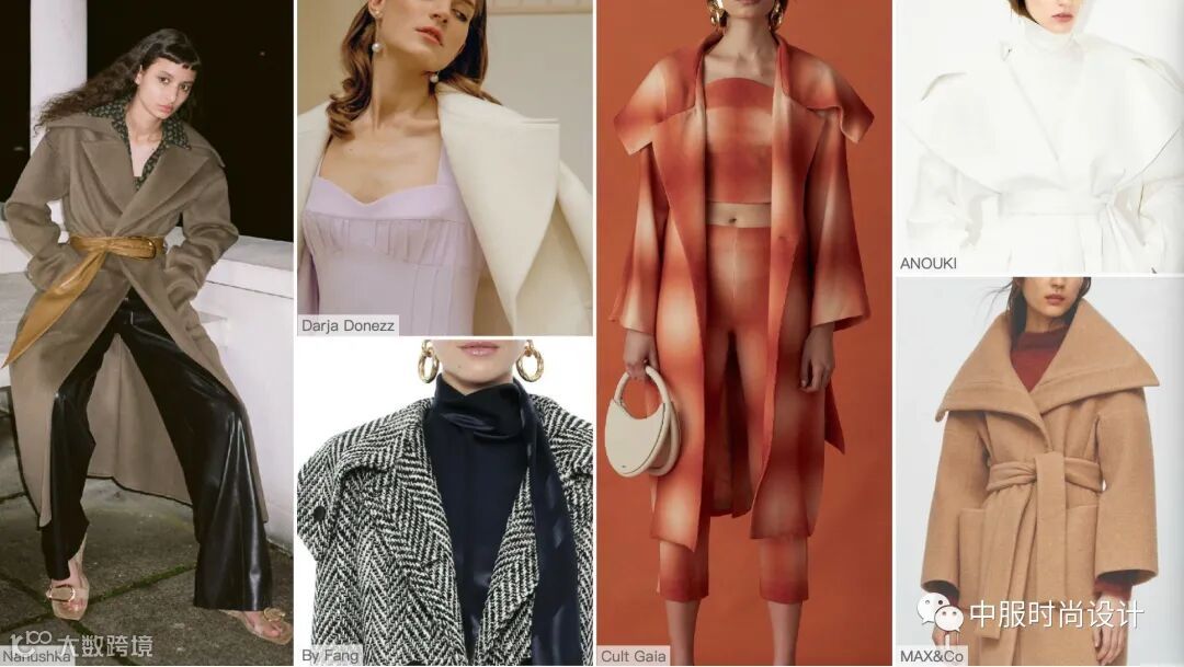 秋冬季的必需品大衣,朝着经典实用,舒适耐持久的趋势发展,优雅中融入更具现代外观的设计细节革新女性装束,将新式设计传达到日常生活中。例如撞色拼接、双层细节、侧边袢带、花色包边、量感反领等细节。
