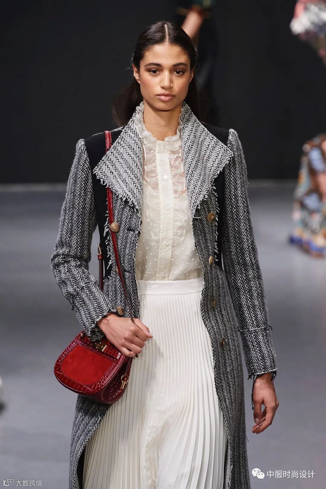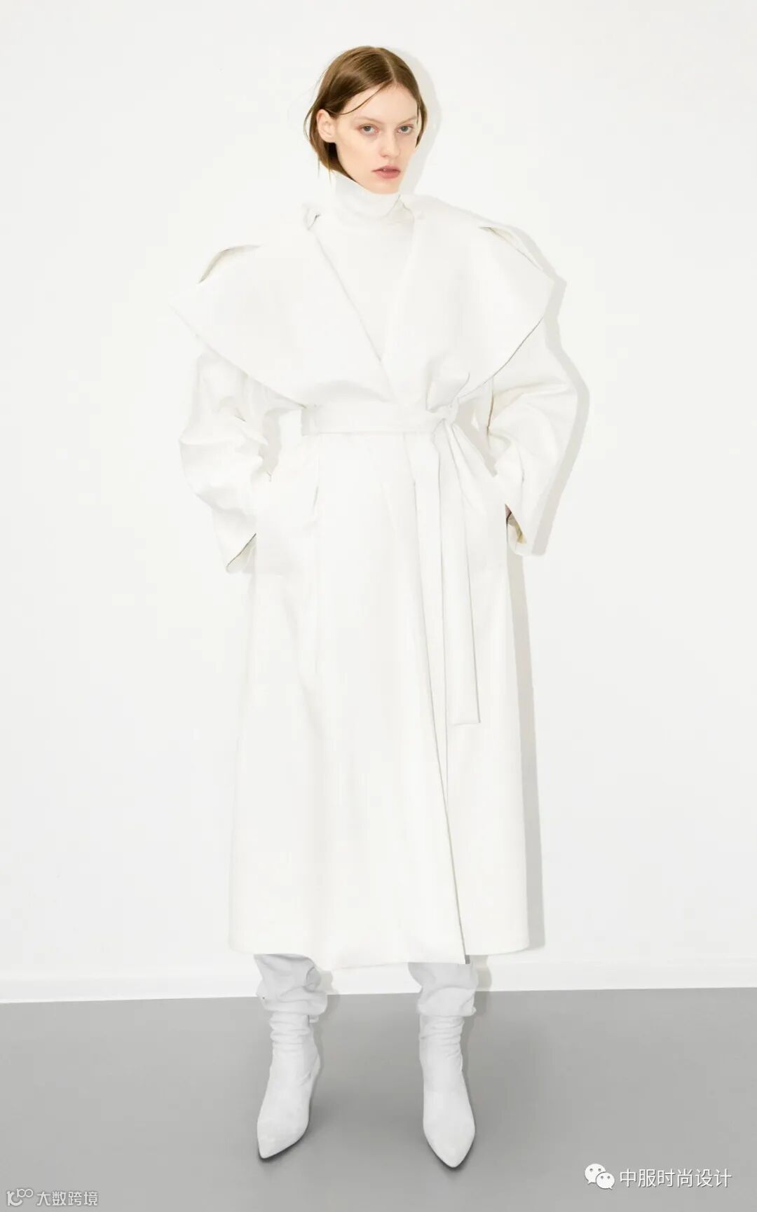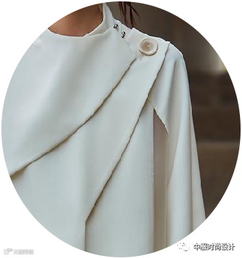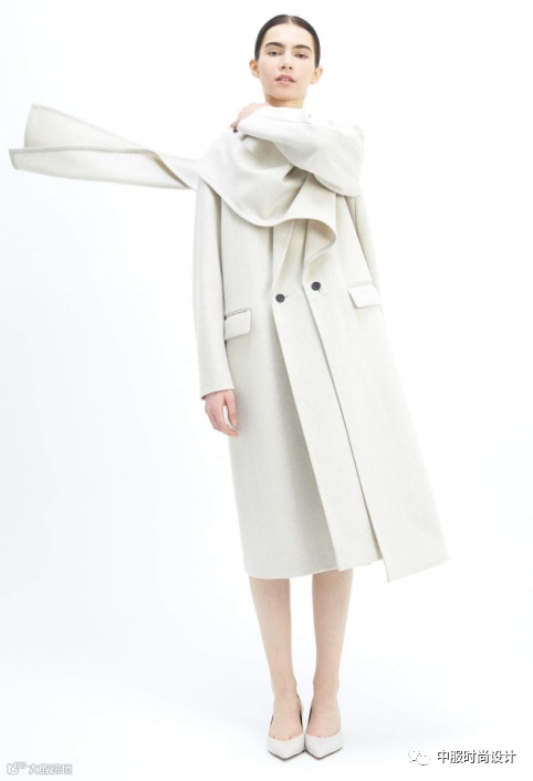 随着上半身装扮的兴起,量感领型近年来成上升趋势,不仅在衬衫连衣裙等单品中持续占领市场,本季大衣单品中,也是热门设计点。超大量感翻领极具张力和戏剧效果,同时使得肩部充满力量感。肩部的延长和扩张演变自80年代造型,迎合消费者趋势。本季,量感翻领的应用要点在于与大身相同面料,不拼接或弱化拼接,打造外翻效果,使得领子披散在肩部。