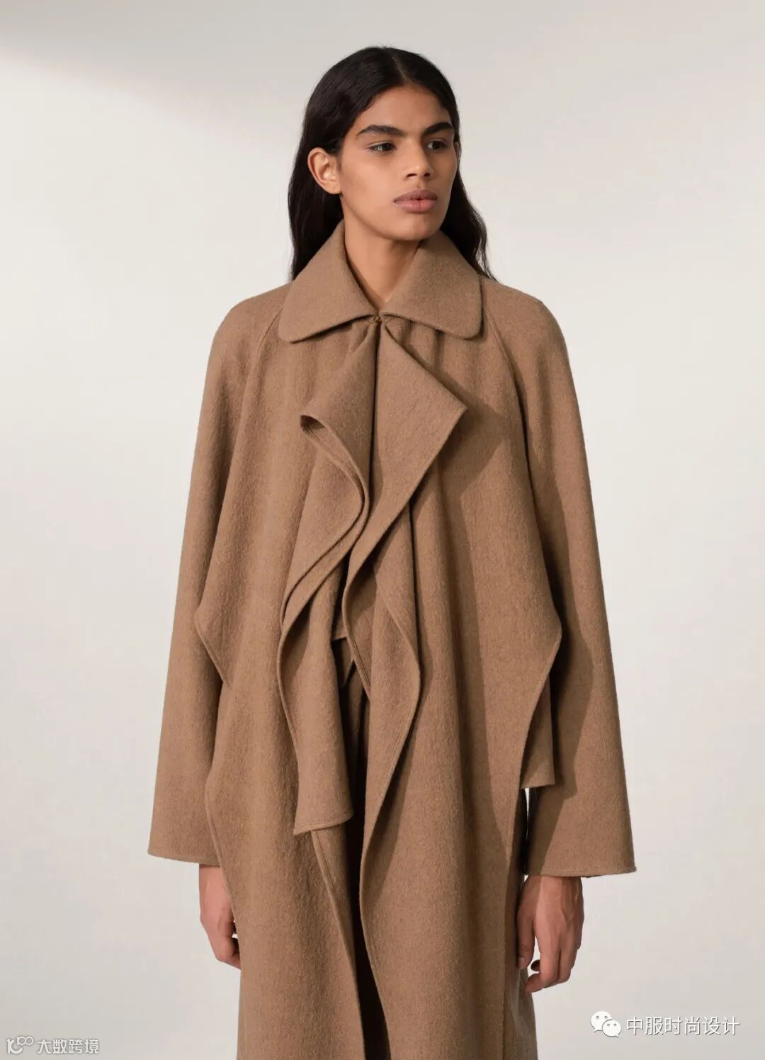 双层大衣在极简风格下逐渐变得重要,双层设计打造的层次感为大衣增加设计亮点,同时大量感的设计迎合新女性对力量感的需求。利落干净的剪裁与解构门襟的细节处理,层叠的体积空间感为穿着者带来优雅大气超强气场。搭配利落长靴拖地阔腿裤或连衣裙带来刚柔相融 新女性形象的穿搭指南。