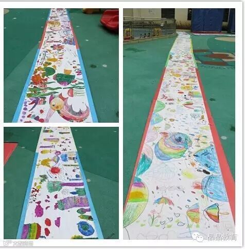 家长们早早的入园,各班将活动内容流程及时间安排展示在教室外,可供家长清晰各个环节。然后让家长们走进班级,具体观摩及了解孩子半日生活学习情况。教学活动结束后,组织全园家长对本次亲子手工制作比赛的作品进行评比,让每位家长参与其中,原因之一是以公平、公正的方式选出最优秀的作品,其二提供一个平台可让各位家长学习。作品评比结束后,开始作百米画卷,家长们给孩子们树立了好榜样,积极参与其中。