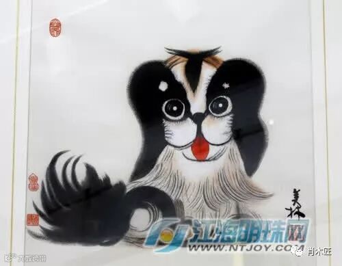 沈绣艺术家们还精心绣制了著名国学家范曾创作的新作,画面中的小狗惟妙惟肖,彰显出南通仿真绣的精髓。(通讯员 宋诚林)
