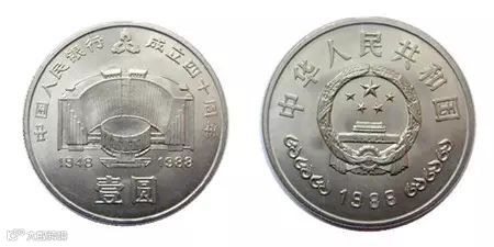 中国人民银行成立40周年纪念币:最高时市场价为4000多元,目前价在3000元左右。