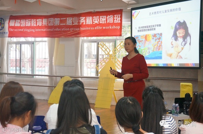 4月17日,晶晶国际教育集团“三省六地”教学园长和骨干60多人汇集深圳桃源居晶晶幼儿园,参加教科研中心主办的第二届业务精英研修班。为期三天的研修班主题为:“用心灵解读艺术,用艺术发展孩子心智”,通过“专家导航”、“行动学习”、“专家团队引领”、“专题培训”等培训版块,集团教科研总监谭敦梅和蔡晓静园长的两场关于《3-6岁幼儿学习与发展指南》艺术领域解读和《一日活动中的艺术教育》培训;各年龄段蒙特梭利班半日活动观摩后张静督导的专家导航;陈碧琴深圳市音乐课题组课例观摩和专家团队引领评析;园本艺术课例的观摩研讨和两所省级园、特色园考察的考察中,大家就艺术教育的目标、教学活动、教学环境、教师的准备进行了有效的探讨,为晶晶各园艺术教育研讨起到了领航作用。