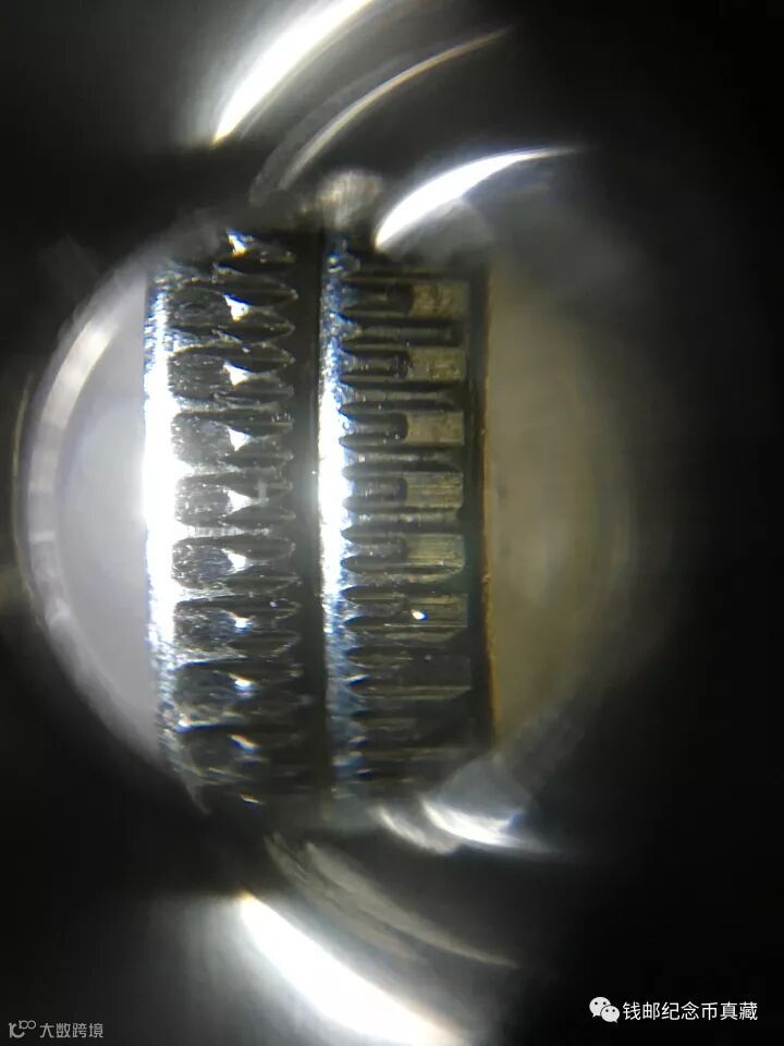 共同点:均采用微缩文字和全齿间隔半齿防伪技术,在和背景局部均有微缩“HE”字样。如下图: