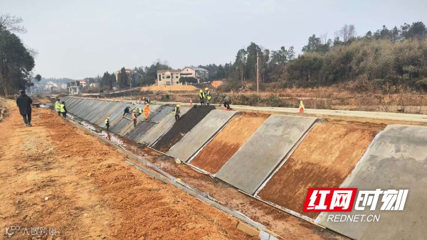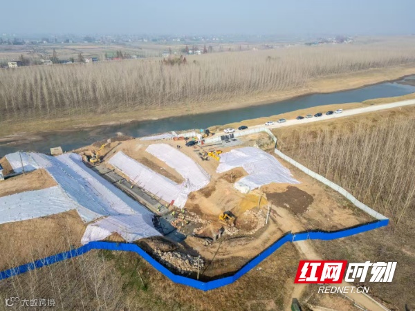 坐标,洞庭湖区重点垸。堤防加固一期工程施工热火朝天,正抢抓建设进度。