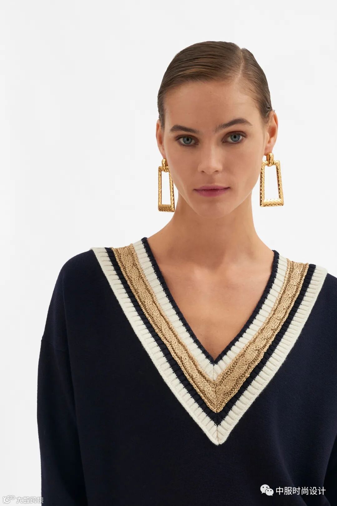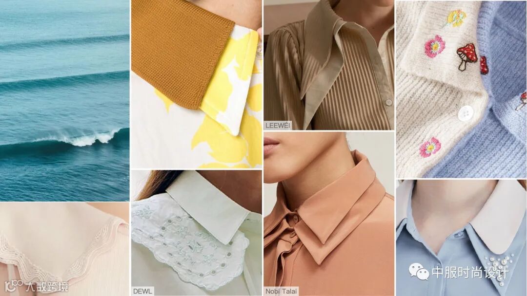 毛衫款式越来越注重衣领、袖口、下摆等细节部位的设计装饰与裁剪,而作为视线聚集的焦点领部细节设计成为不可忽视的重要部位。在新季衣领设计更加细腻精致,毛衫领部设计也可在成衣的领部设计中汲取灵感。本文通过领型、版型、装饰等维度提炼出领部织带、定制领片、层叠衣领、扣合领型、金属装饰、花型镂空、领部花型等衣领上的趋势变化。