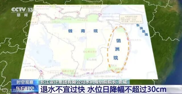 随着水位降低,部分堤防后面地势较高的堤段将会裸露,该部分堤段就无法继续排水了,其余堤段继续排水,还需要大约5天时间将垸内水排出。