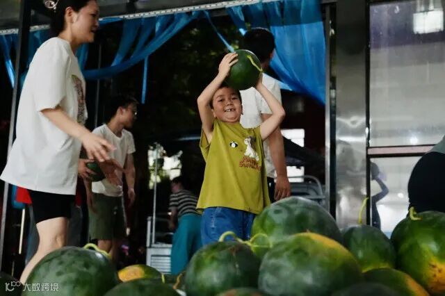 (7月6日深夜,华容县职业中专安置点附近的群众集资向受灾群众送来1300公斤西瓜。何佳洁 摄)