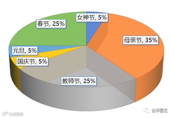 康乃馨在各个节日中的销量占比统计