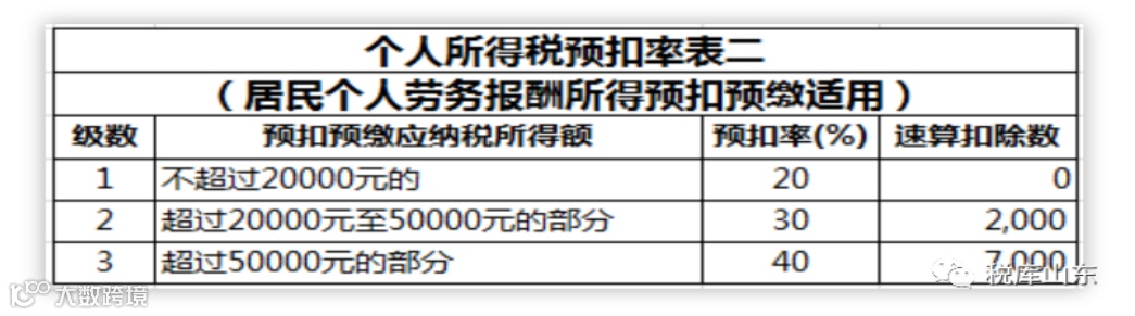 支付单位应预扣预缴个税=(100100-100)×(1-20%)×40%-7000=25000