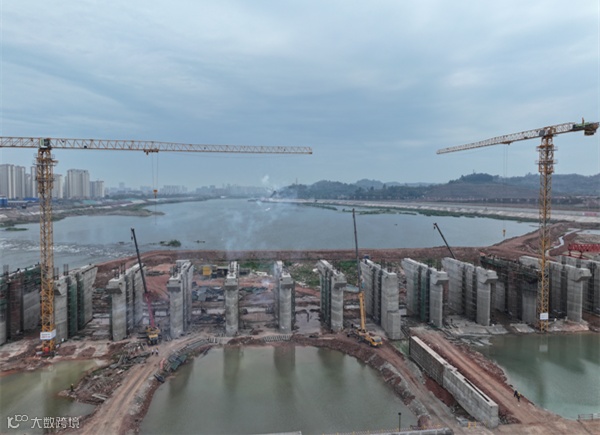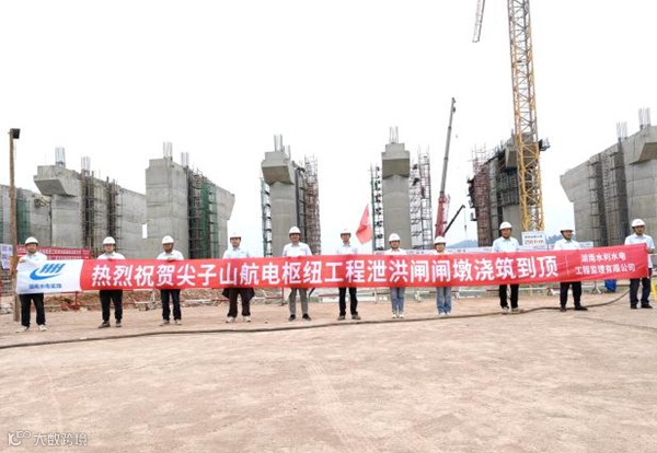 四川岷江彭山尖子山航电枢纽工程泄洪闸闸墩浇筑到顶
