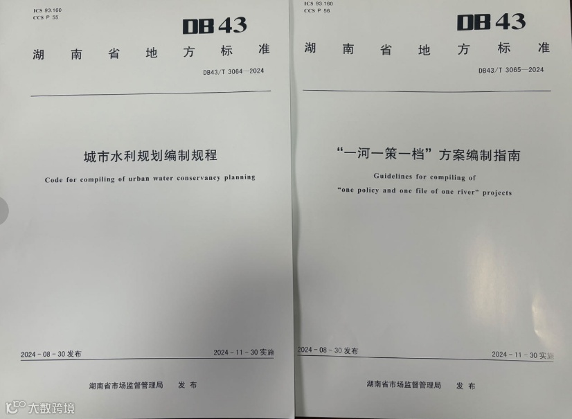 《城市水利规划编制规程(DB43/T 3064-2024)》和《"一河一策一档"方案编制指南(DB43/T 3065-2024)》