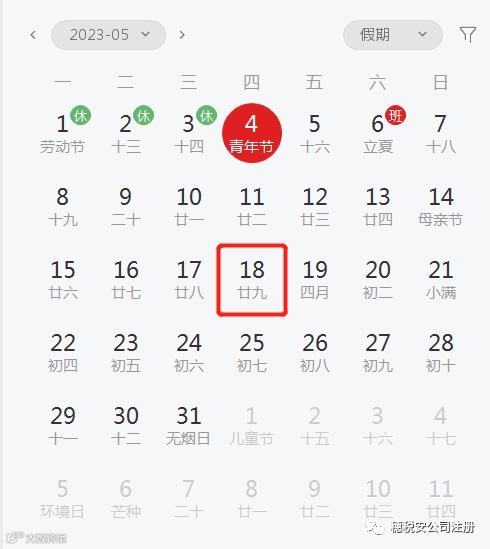 2023年5月份征期截止到18号,请大家合理安排好时间!5月有以下几件大事,我们先来看一下吧: