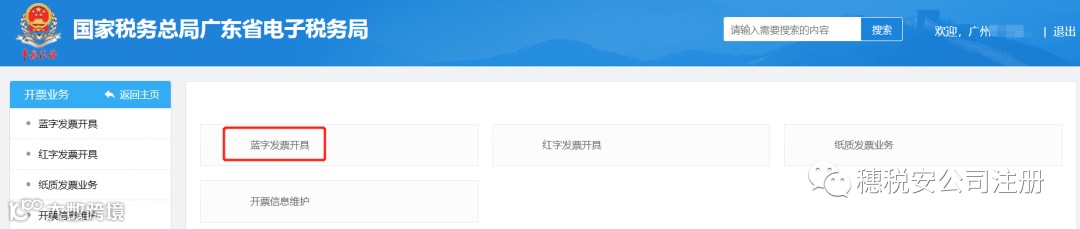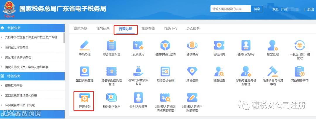 输入账号密码登录成功后,点击【我要办税】--【开票业务】
