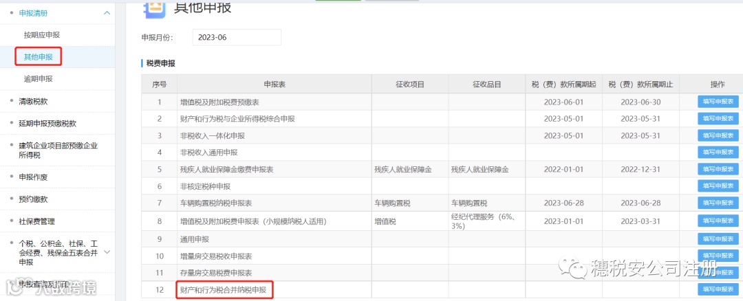 财产和行为税合并申报