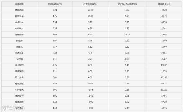 昨日涨停股今日表现