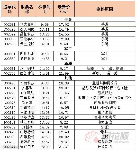 盘面上,早盘粤港澳大湾区概念股异动,珠海港和深赤湾A相继冲高回落,恒基达鑫强势上涨成为新龙头,但该股多次开板,资金分歧较大,上海国企改革和军工板块随后异动,中原证券带动证券板块大幅拉升,推动上证指数上行,恒大高新封板,推动了手游概念股反弹,而前一日尾盘炸板的中装建设早盘小幅低开,英维克冲击跌停,填权板块陷入低迷,创业环保高开低走,雄安板块反抽后再度陷入低迷,今日开板的新股智能自控早盘平开高走封板,但因次新板块弱势,该股随后开板,高位次新股依然缺乏资金接力。午后手游概念股纷纷走强,八一钢铁直线拉升,带动钢铁反弹,西部建设尾盘涨停,助攻新疆板块延续反抽。