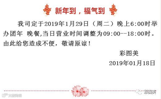 2019年春节即将到来,彩图美全体员工在此深深感谢您长期以来对我司的支持和厚爱!