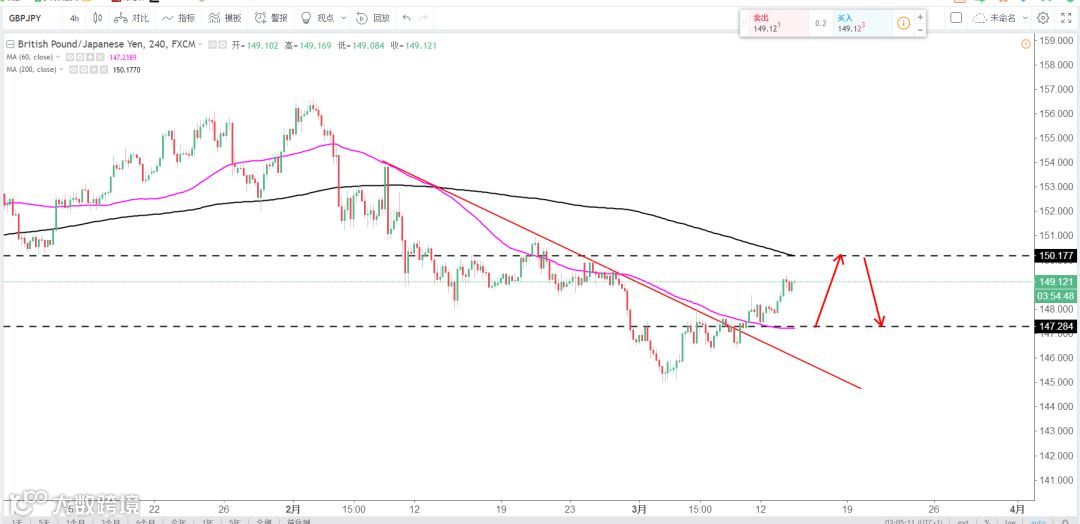 策略:回调做多或是回踩下行趋势线企稳做多,若汇价突破1.40位置顺势做多。(谨慎操作,请设置好止损线!)
