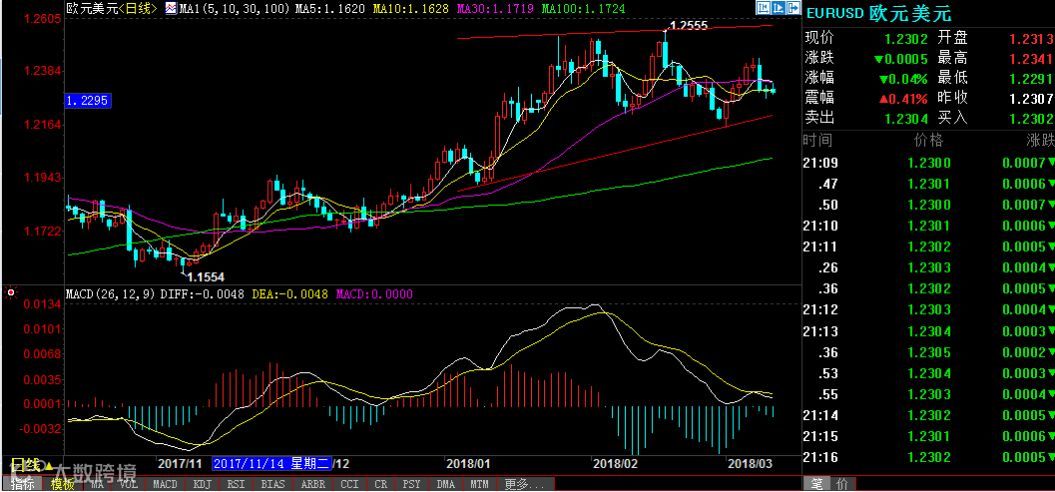 周一(3月12日)欧市欧元兑美元一度承压于1.2300关口,日内欧美经济数据较为清淡,焦点转向明日公布的美国通胀报告。上周欧洲央行3月决议的谨慎立场未能令汇价于1.2450上方续涨,但美国2月非农报告中乏力的薪资增长令其跌幅受限。