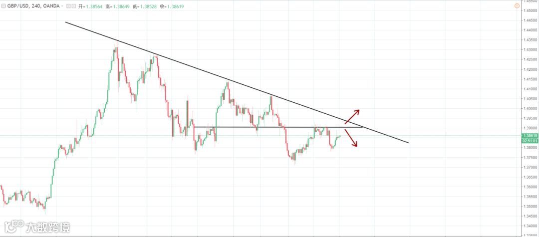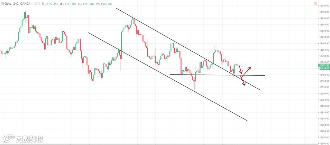 策略分析:上周五英镑承压下破四小时小级别的上升趋势线,汇价呈震荡上行运行,目前汇价正重新测试前期大级别下跌趋势的的压力,此前下行的30周期均持续走平,而且近期来多重高点连结后构成的短期趋势线的压力强度也比较大,若是汇价承压于趋势线之下,则将限制汇价进一步上行,若是汇价有效上破趋势线并企稳,则汇价将打开上涨的空间。