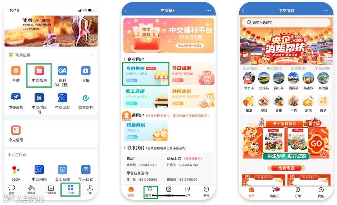 进入交建通工作台点击“中交福利-乡村振兴”。