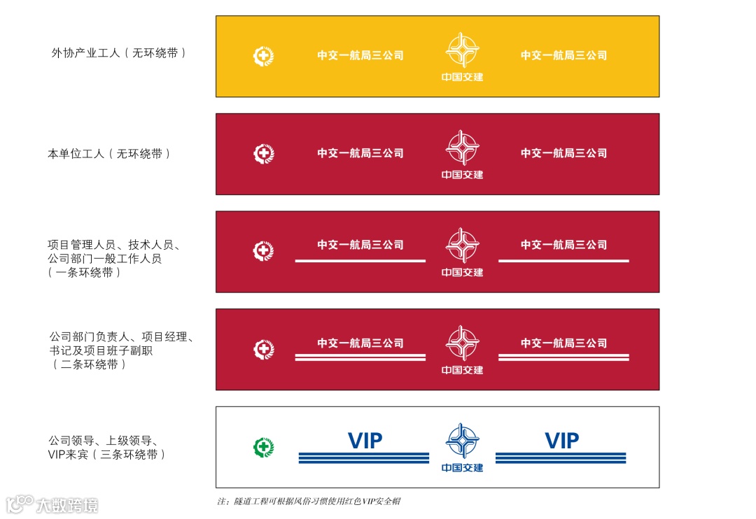 除此之外,黄色安全帽应用于本单位聘用的劳务工;深红色安全帽应用于本单位职工及船员;白色安全帽应用于部门负责人、上级领导及VIP 来宾。
