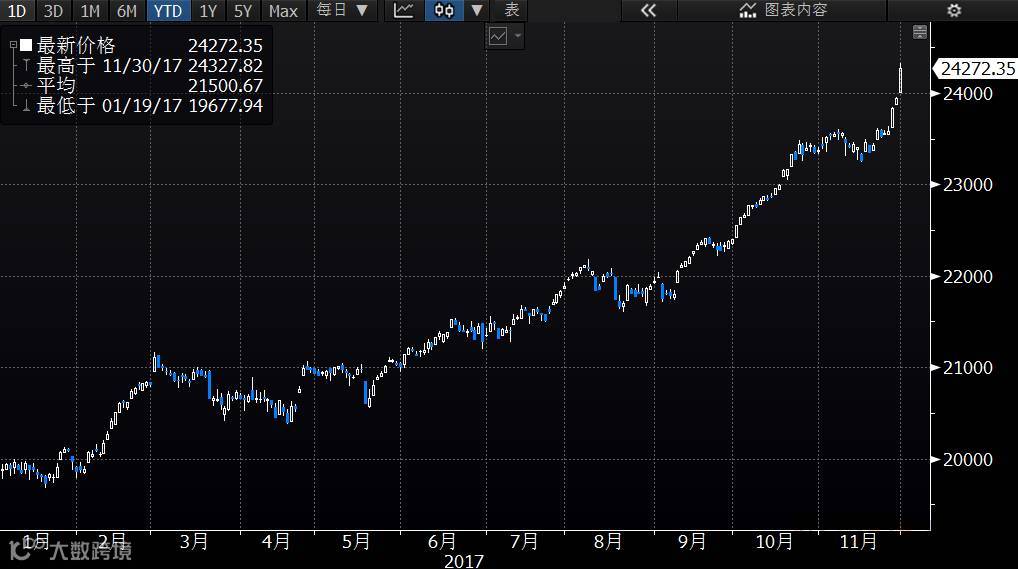 (道琼斯指数今年以来日线K线图,屡创历史新高)