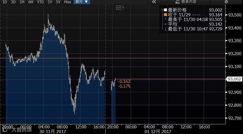 美国国会参议院将在12月1日对税收改革法案进行表决此,前一直持反对意见的参议院元老麦凯恩已同意支持税改提案,但美元指数在多方消息面前景继续乐观的背景下却始终止步不前,原因是有传闻称特朗普打算撤换掉一直以来就与他政见不合的国务卿蒂勒森,令市场情绪再度恐慌。