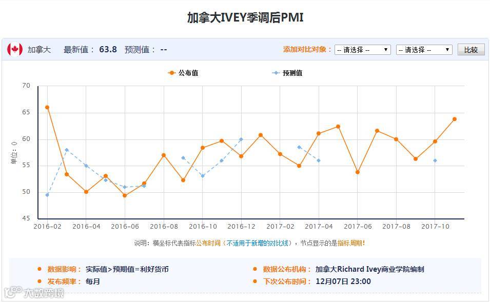 23:00 加拿大 11月IVEY季调后PMI