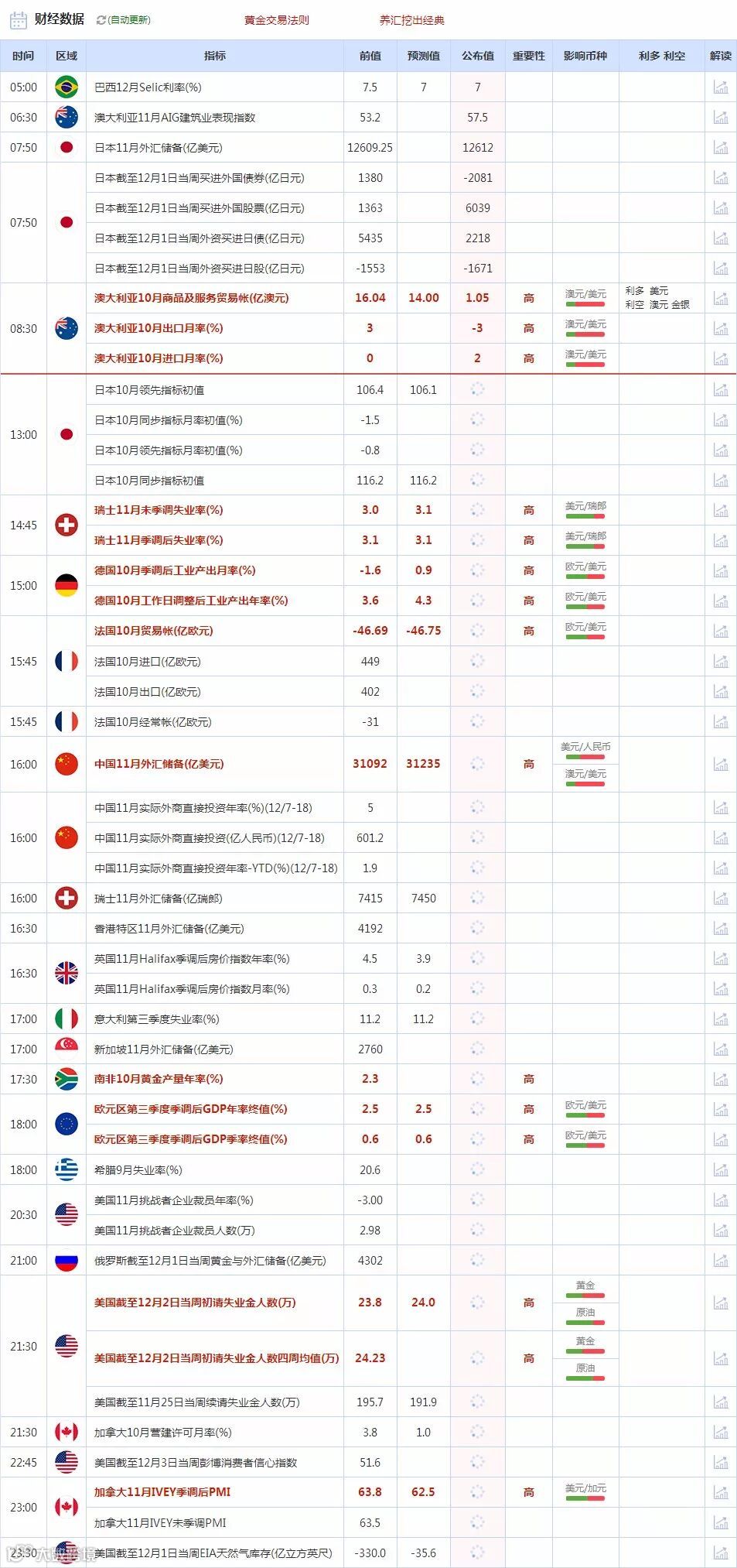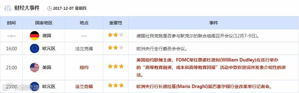 美国时段,投资者需关注21:30公布的美国截至12月2日当周初请失业金人数,以及于23:00开始的欧洲央行行长德拉吉讲话。