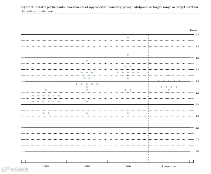 加息预期:美联储预估显示今明两年均加息三次,鲍威尔称加息过慢损害经济;2020年底联邦基金利率预期中值为3.4%。