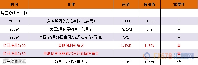 周三(3月21日)关键词:美联储利率决议,美联储主席鲍威尔讲话;