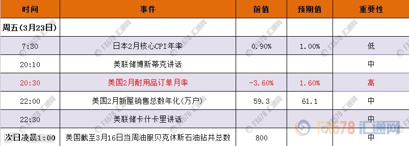 周五(3月23日)关键词:美国2月耐用品订单月率;
