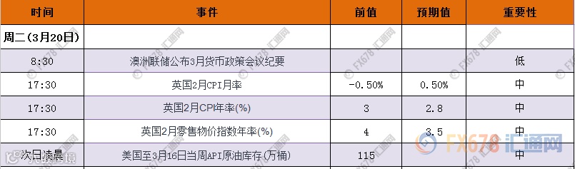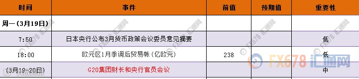 周一(3月19日)关键词:G20财长和央行官员会议;日本央行会议纪要;