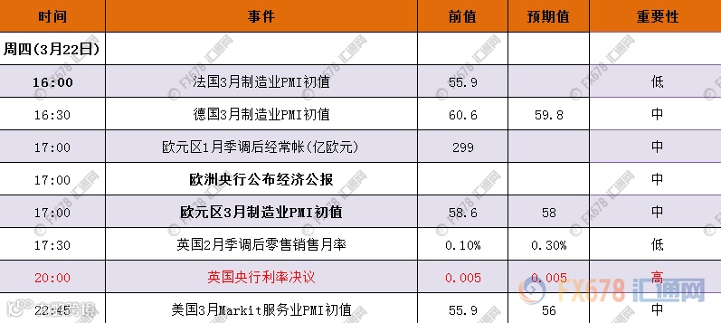 本交易日将迎来英国央行利率决议,对于本次英国央行的利率决议,虽然市场普遍预计英国央行将保持利率不变,并可能会在5月份才会采取加息行动,而且此次无季度通胀报告及新闻发布会,但投资者仍需留意利率政策声明的鹰鸽程度。