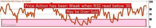 作为一种震荡指标,RSI的值限定於0到100之间,表示某个时刻相对过去一段时间,价格表现的强弱。如果RSI的值低於30,投资者常常认为这表示价格行为疲软,该产品可能存在超卖。