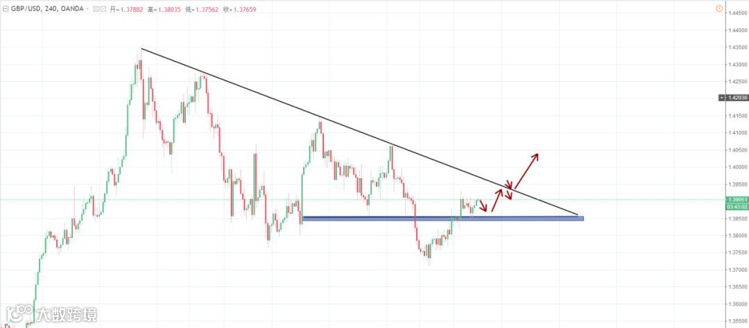 策略分析:英镑兑美元4小时强力反弹上行且穿过支撑位和阻力位互换的 区间,美元持续走弱非美货币开始进一步反弹,4小时支撑位和阻力位互换已经被打破,整体处于反弹上行的格局,勿选择逆市高空的策略,在基本面的推动下,顺势而为是最好的思路,价格目前上破关键阻力后回落,若汇价企稳后继续向上,则将继续试探前期下降趋势线的上轨阻力,待阻力位方向明确后再顺势操作。