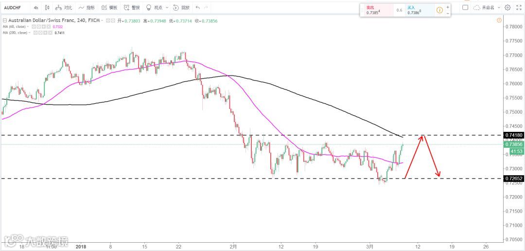 策略分析:多日来区间震荡保持高空低多思路即可,或等待突破后再做布局,区间0.7260-0.7420区域。