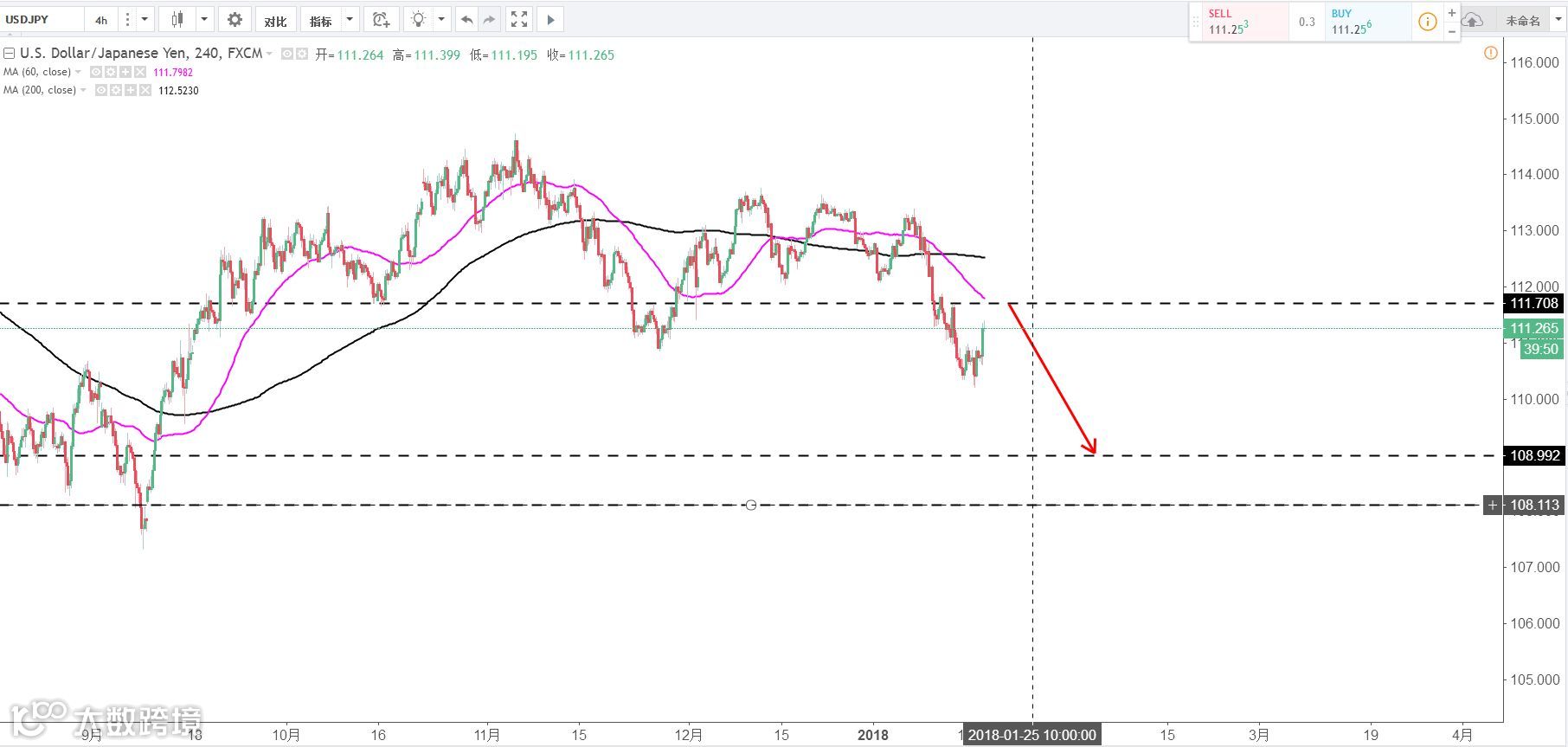 策略分析:空头趋势不变,受加息炒作影响短线上强势回调中,等待压力位逢高布局空单,压力位111.7。