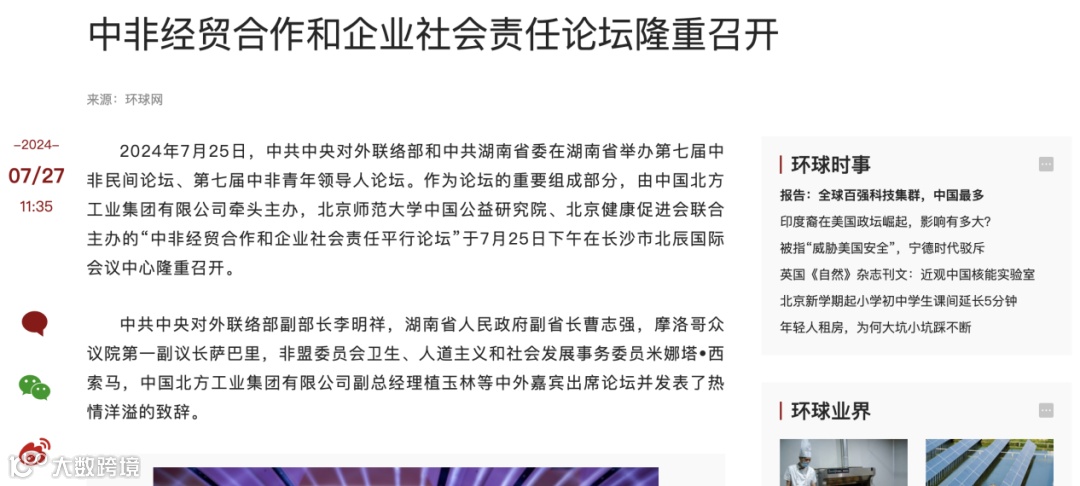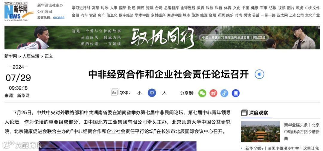 近日,新华网报道称,中共中央对外联络部和中共湖南省委在湖南省举办第七届中非民间论坛、第七届中非青年领导人论坛。论坛期间,与会嘉宾围绕“经贸合作与共同发展”“社会责任与民心相通”“卫生健康与民生福祉”三大议题展开热烈交流。在“社会责任与民心相通”板块,中交二公局带来了员工在坦桑尼亚飞机事故中挺身而出救援受困母子的故事。